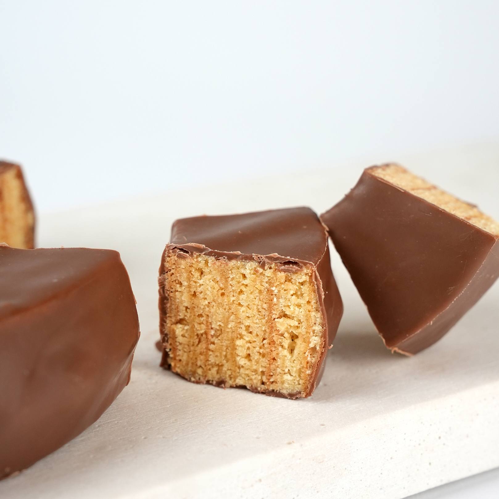Umhüllt von einer zarten Schicht bester Vollmilchschokolade, verbindet dieser Kreutzkamm-Baumkuchen feine Süße mit einer sanften Kakaonote. Dank hochwertiger Zutaten wie frischer Butter, Eiern von regionalen Partnerhöfen und reinstem, echtem Marzipan entsteht ein harmonisches Geschmackserlebnis.