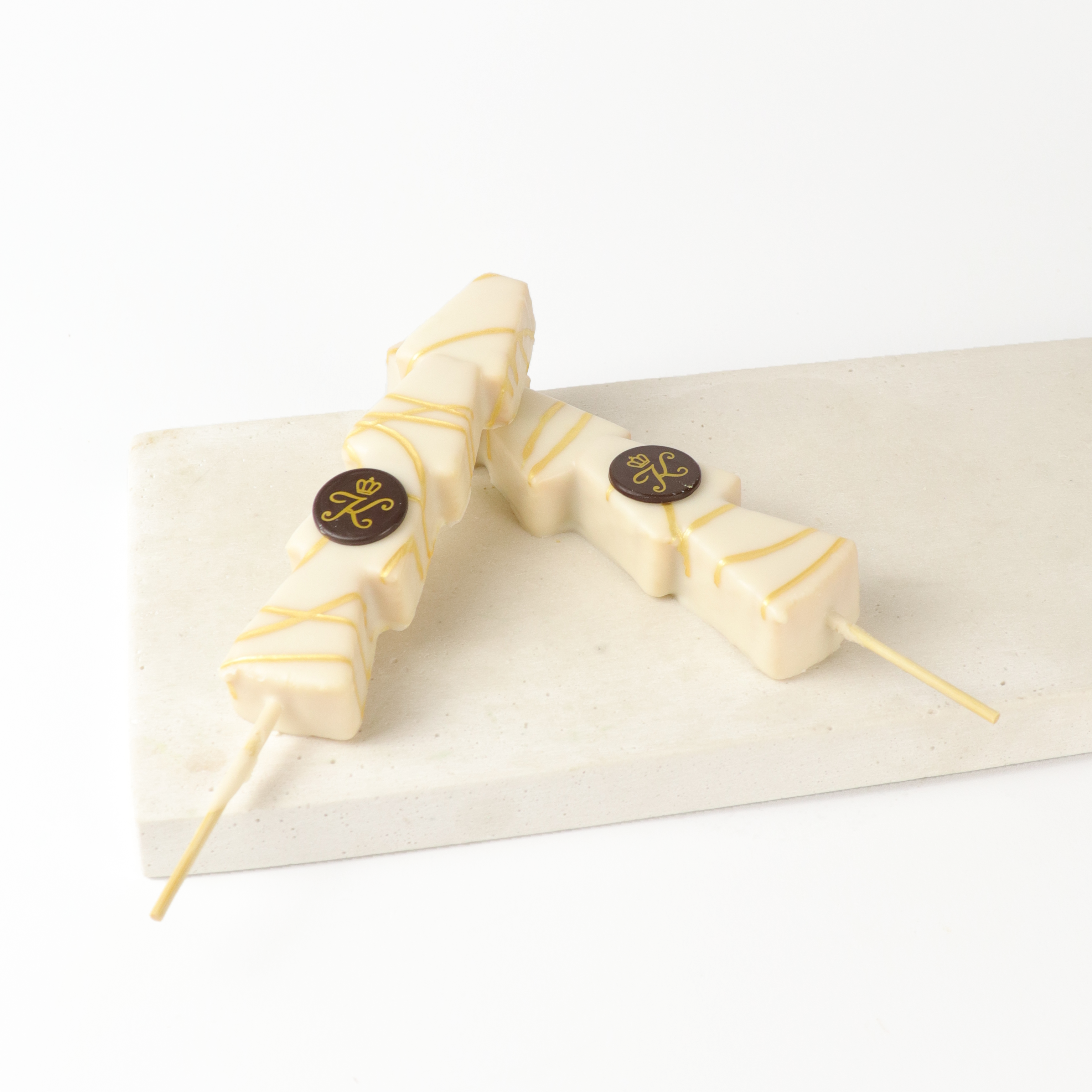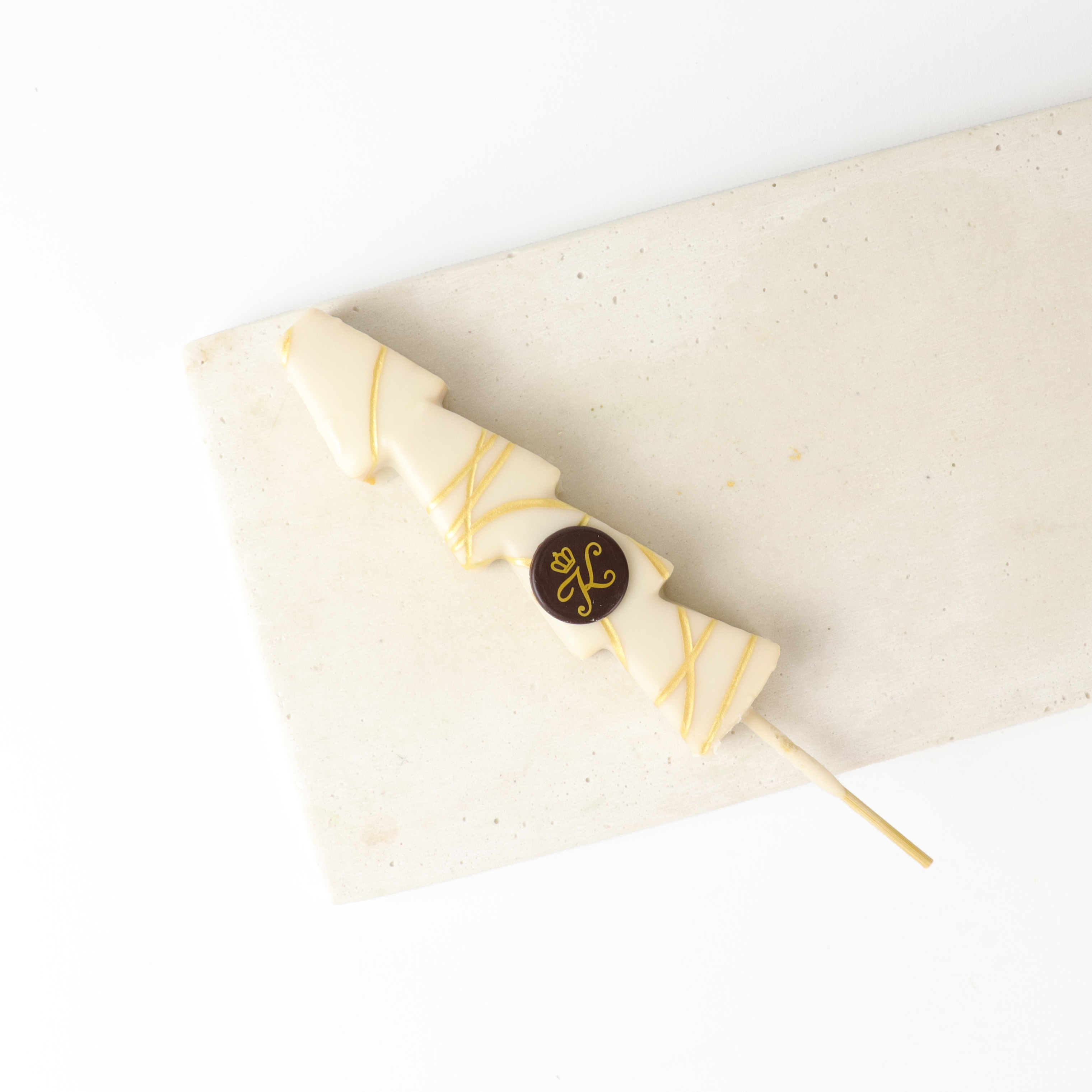 Jede Spitze wird aus feinem Baumkuchenteig gefertigt, der mit edlem Marc de Champagne verfeinert und Schicht für Schicht vor offener Flamme gebacken wird. In handliche Ecken geschnitten und auf einem Spieß vereint, entsteht ein raffiniertes Gebäck, das Eleganz und Tradition in einem originellen Format vereint. Die zarte Glasur rundet das festliche Aroma harmonisch ab.