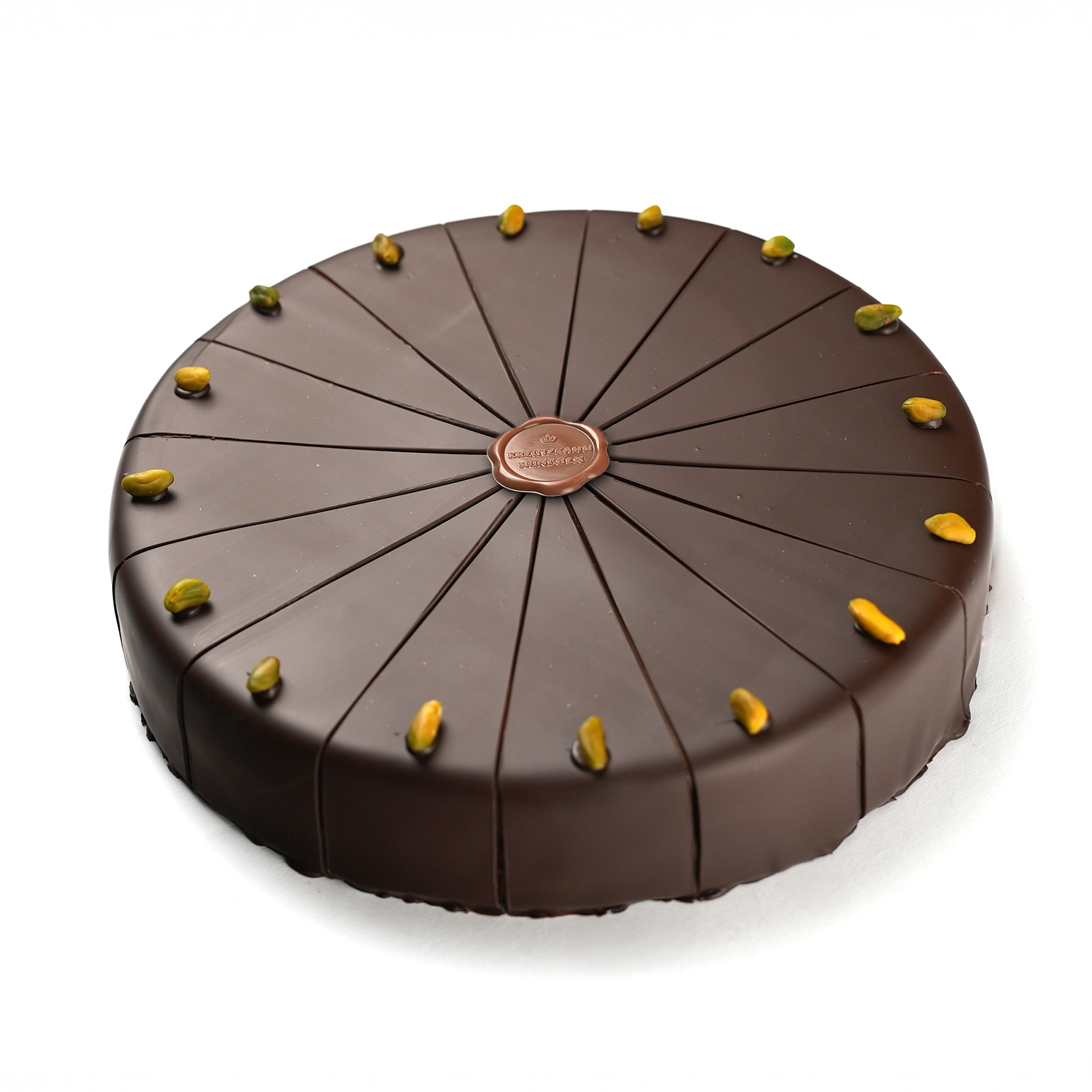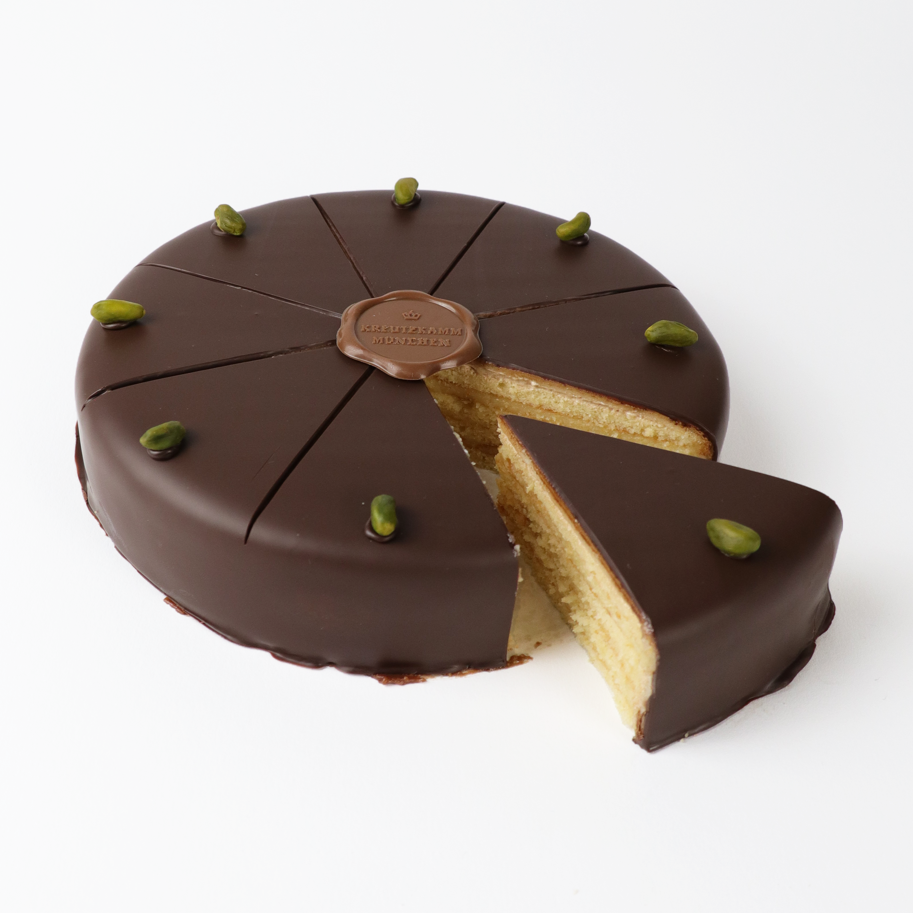 The Gentleman's-Cake is covered with dark chocolate couverture.