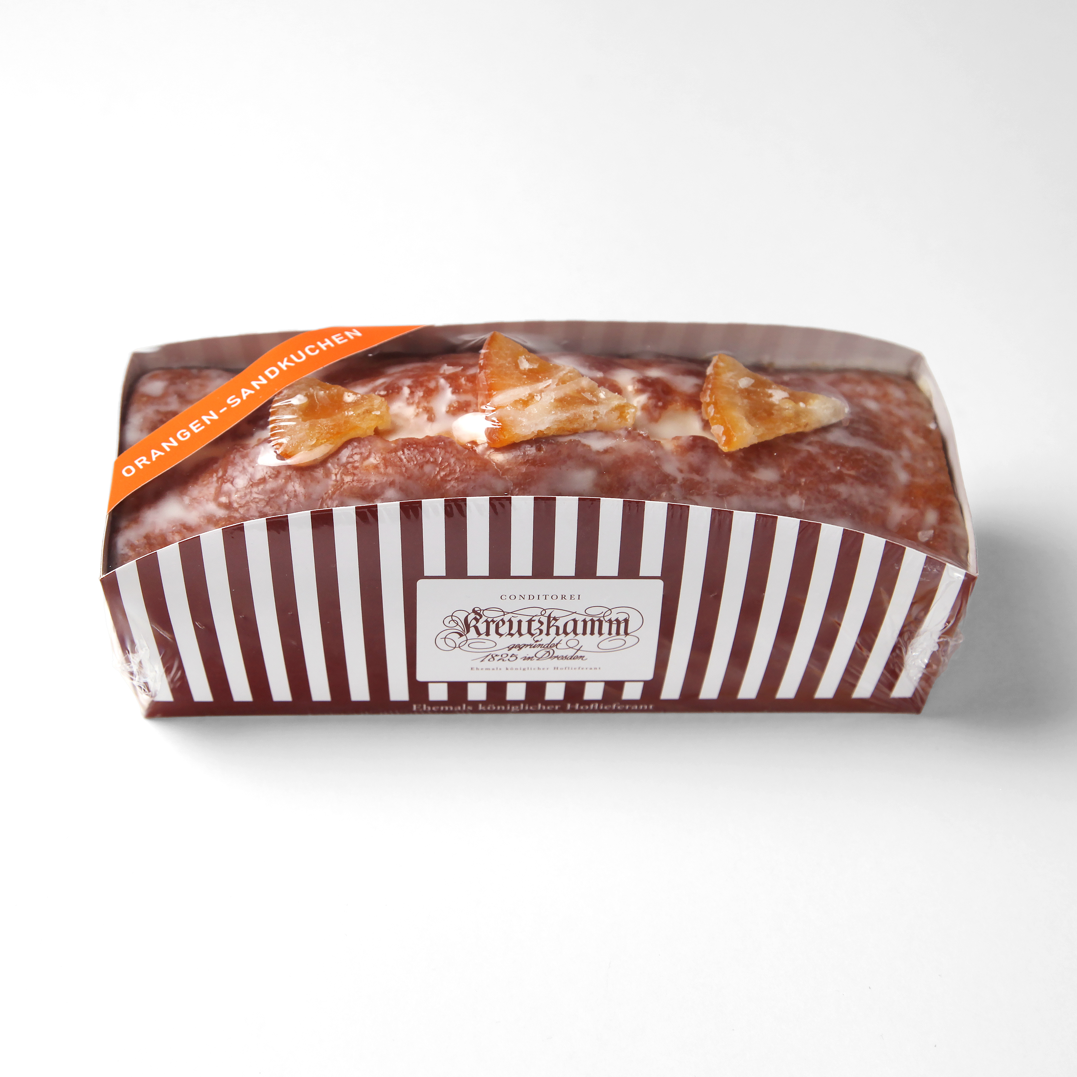 It is topped with candied orange pieces.