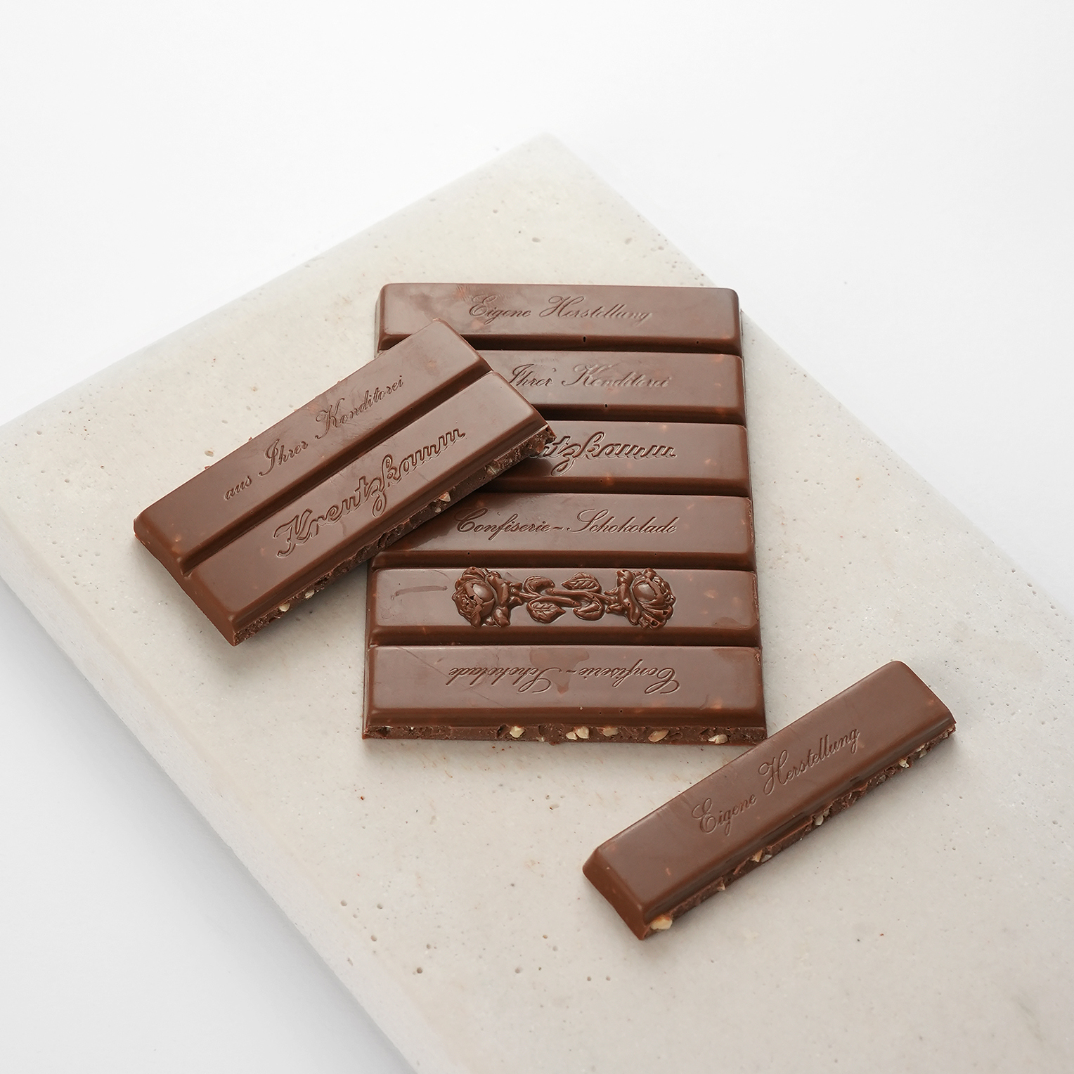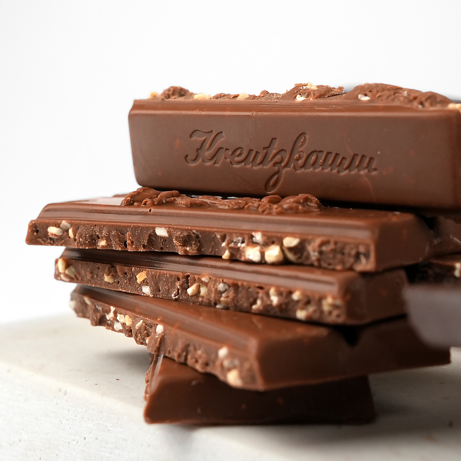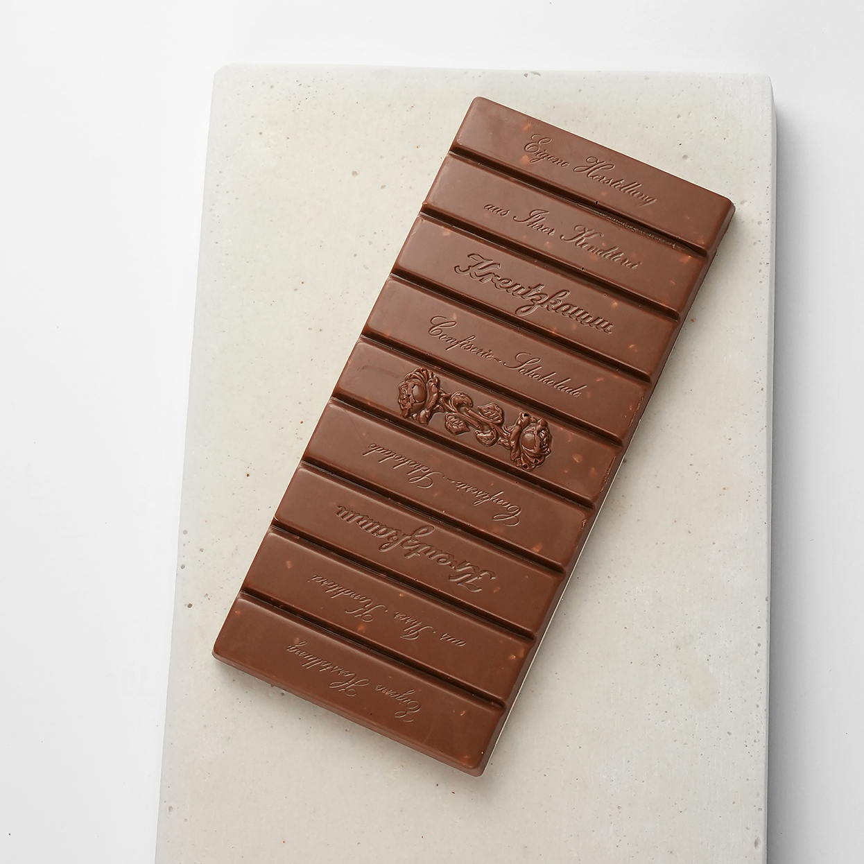 Our Kreutzkamm chocolate bars are created by hand-scooping our best chocolate into a historical form from the 60s.