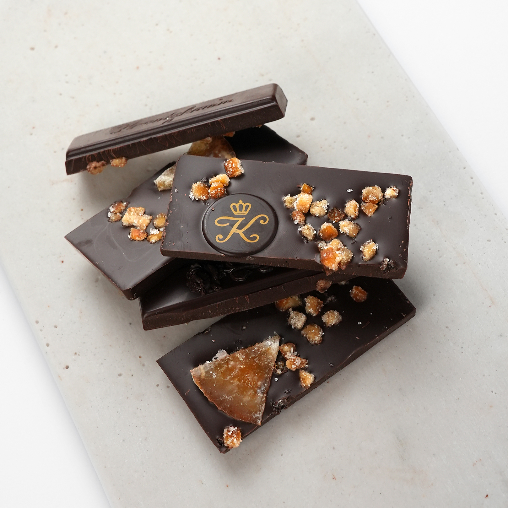Our Kreutzkamm chocolate bars are created by hand-scooping our best chocolate into a historical form from the 60s.