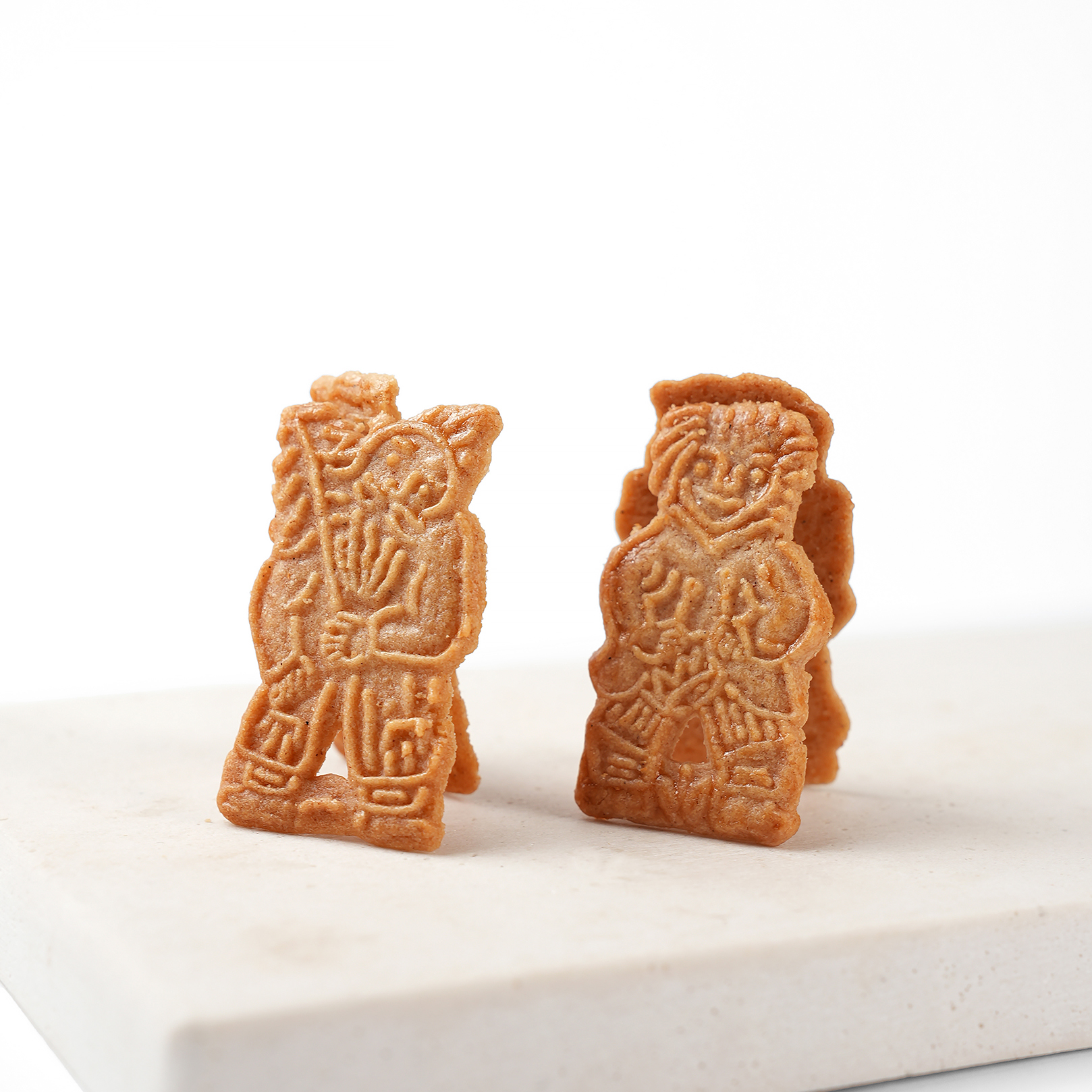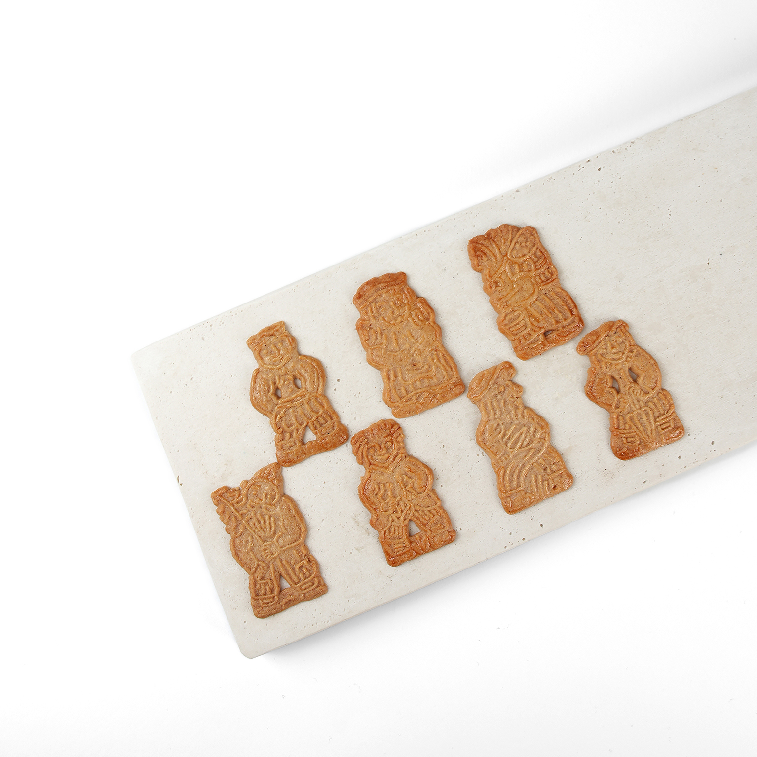 Speculooss: Spekulatius or Speculaas is a type of spiced shortcrust biscuit, traditionally baked around Christmas in Belgium, the Netherlands and Germany. Speculaas are thin, very crunchy, caramelized, slightly browned and, most significantly, have some image or figure (often from the traditional stories about St. Nicholas) stamped on the front side before baking; the back is flat.