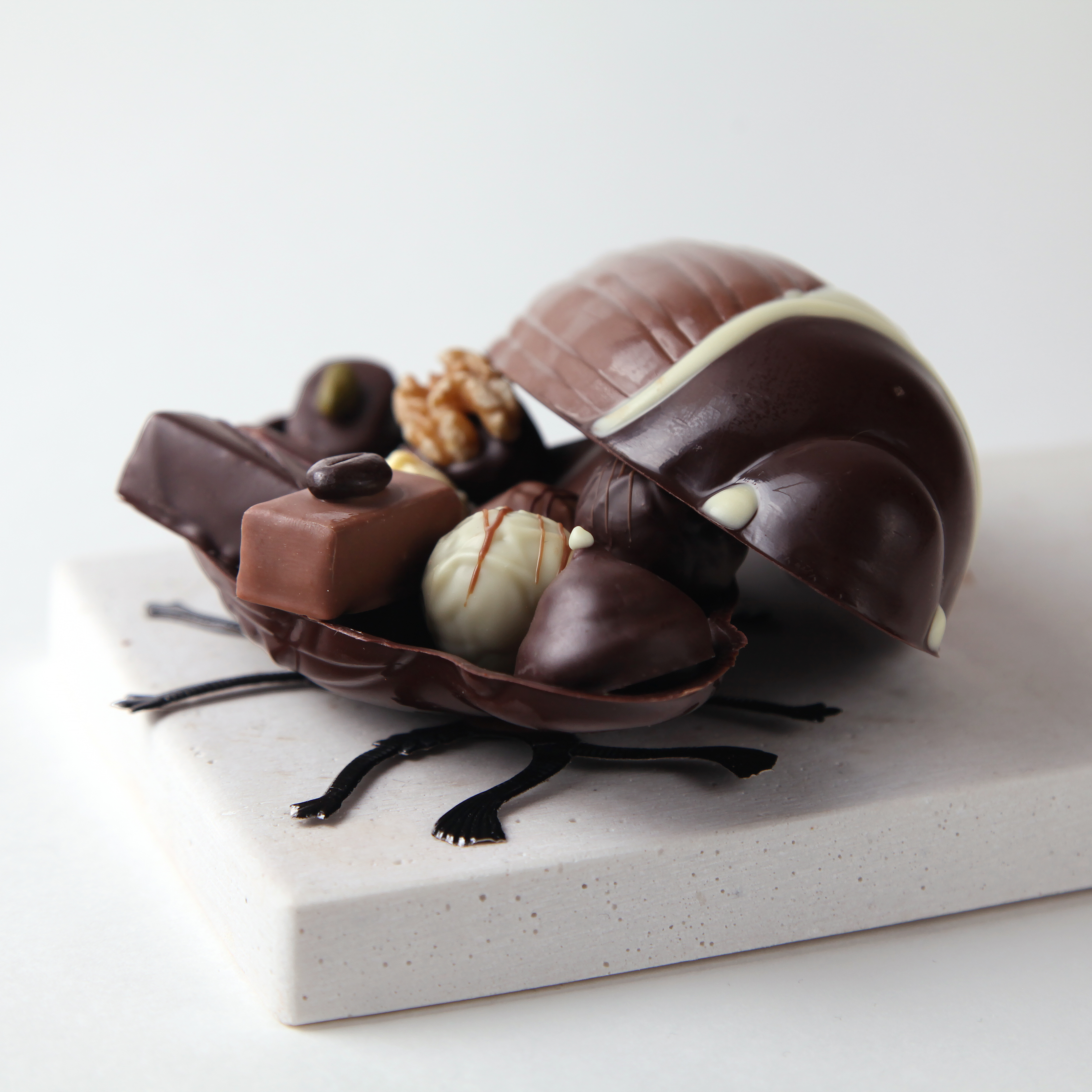 10 artisanal steps to a make a chocolate May Beetle...These May Beetles are molded by hand again and again until they take on their typical appearance in the various chocolates.