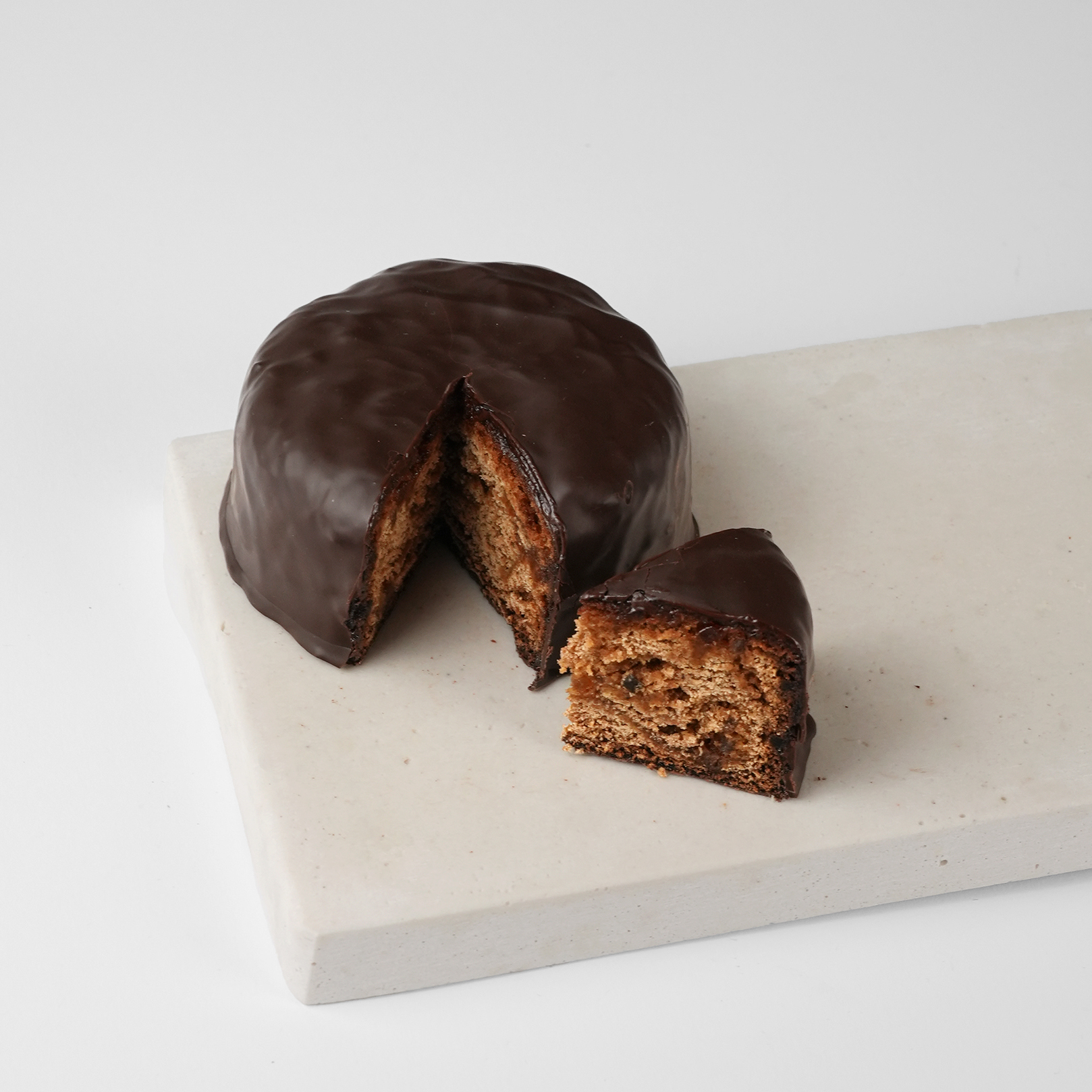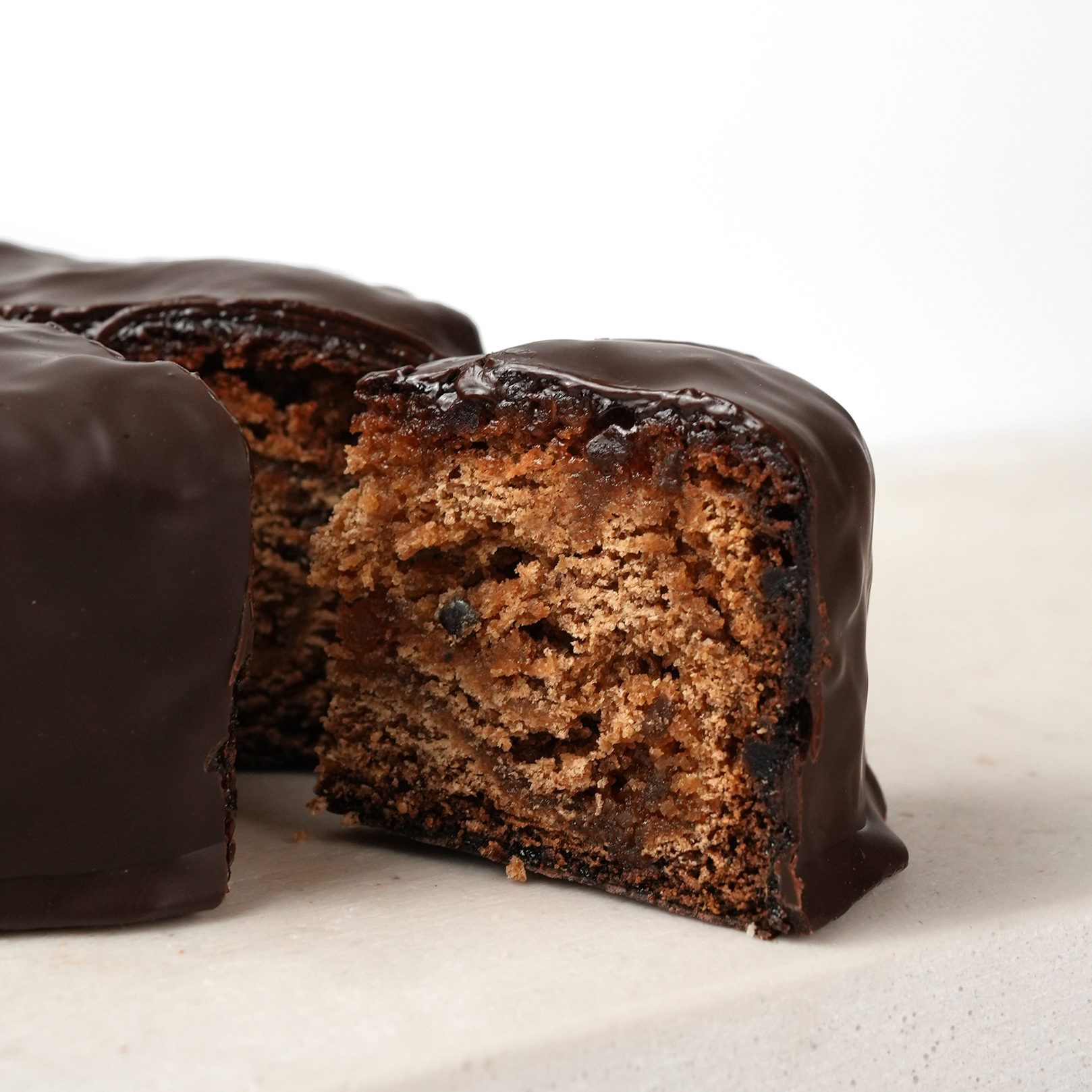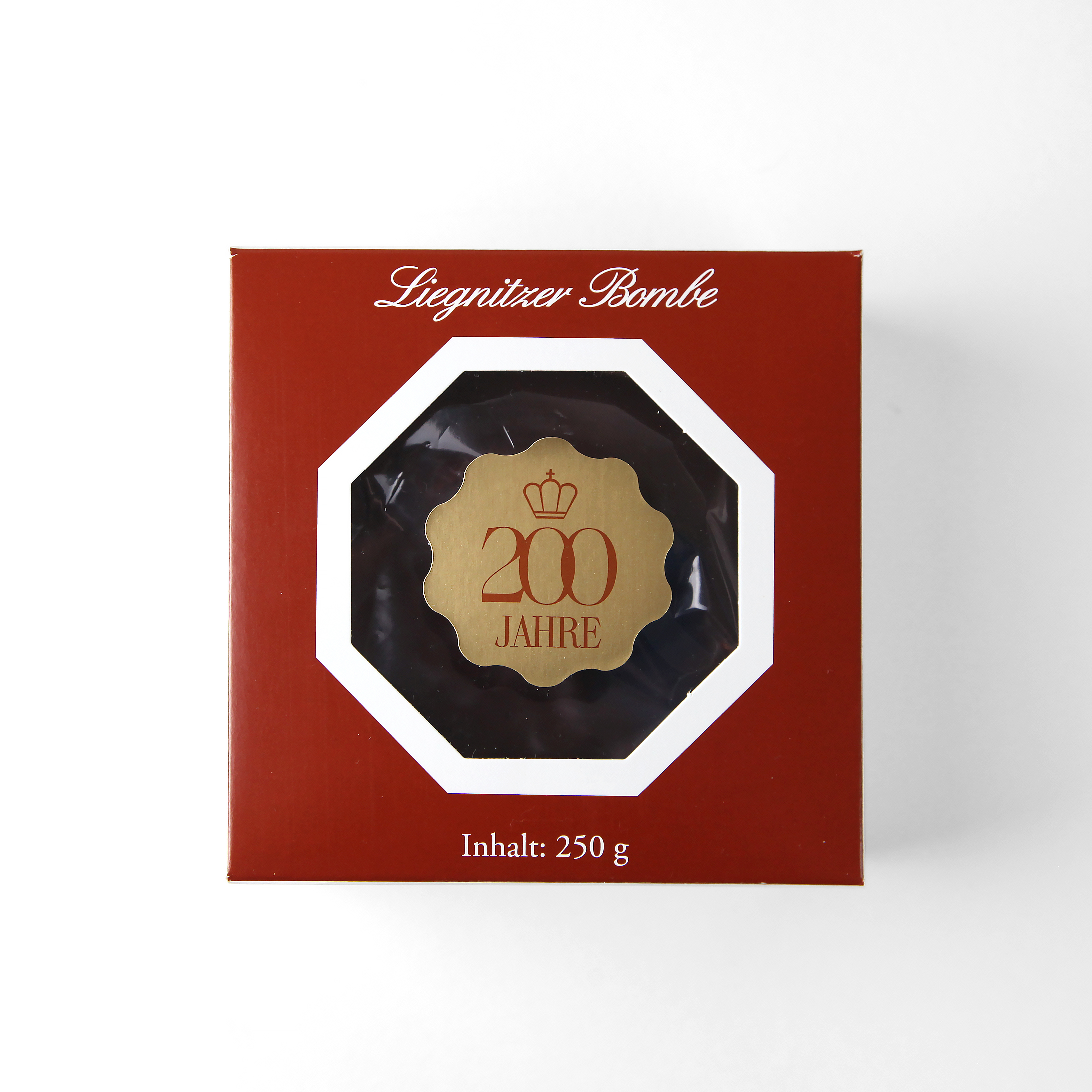 The Liegnitz bomb is a gingerbread specialty from Liegnitz in Lower Silesia. They are small round cakes made of brown honey cake dough with a fruity filling of jams, marzipan and candied fruits. It is covered with dark couverture.