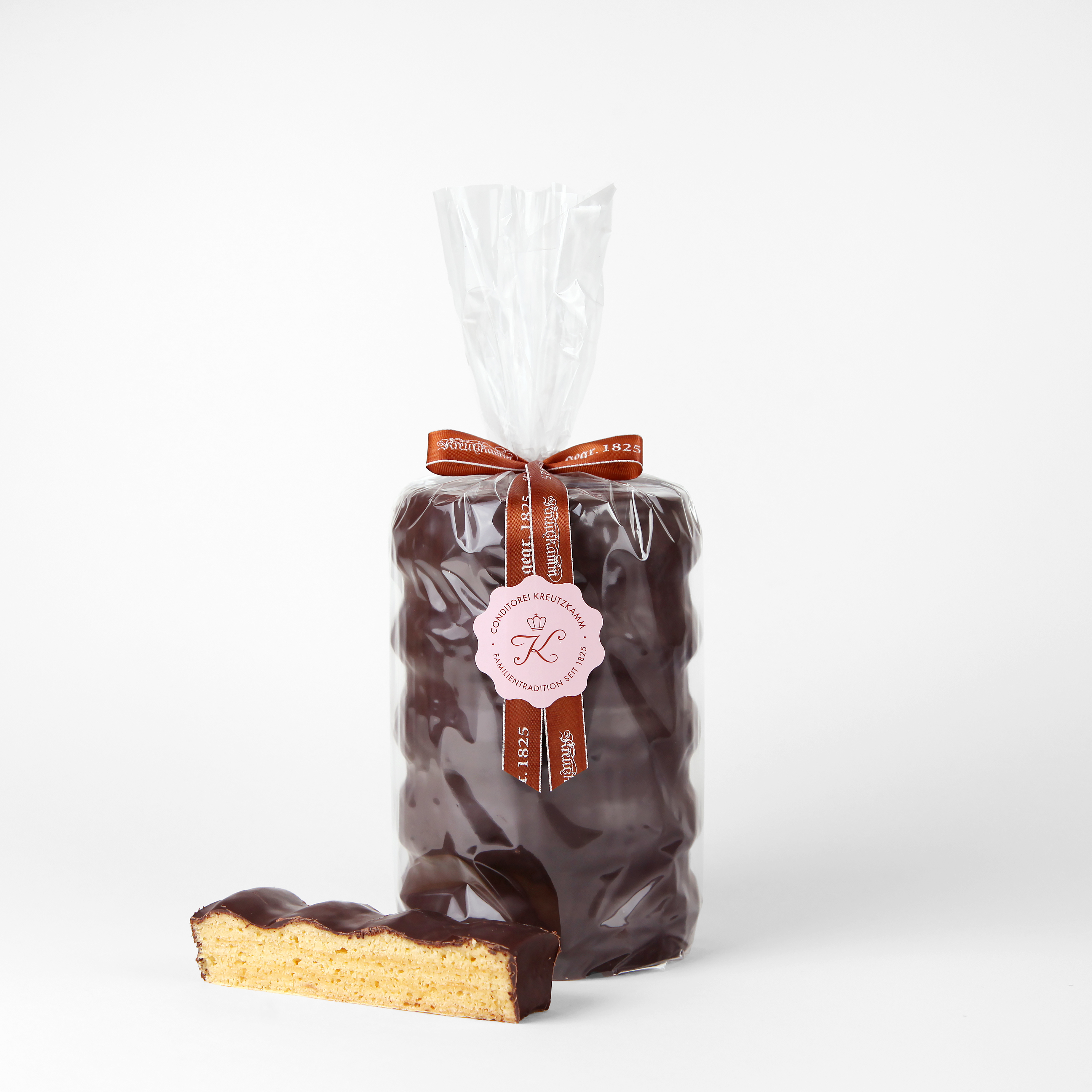 Kreutzkamm Baumkuchen is an indulgence every day. The freshly baked Baumkuchen is covered with fine dark chocolate.