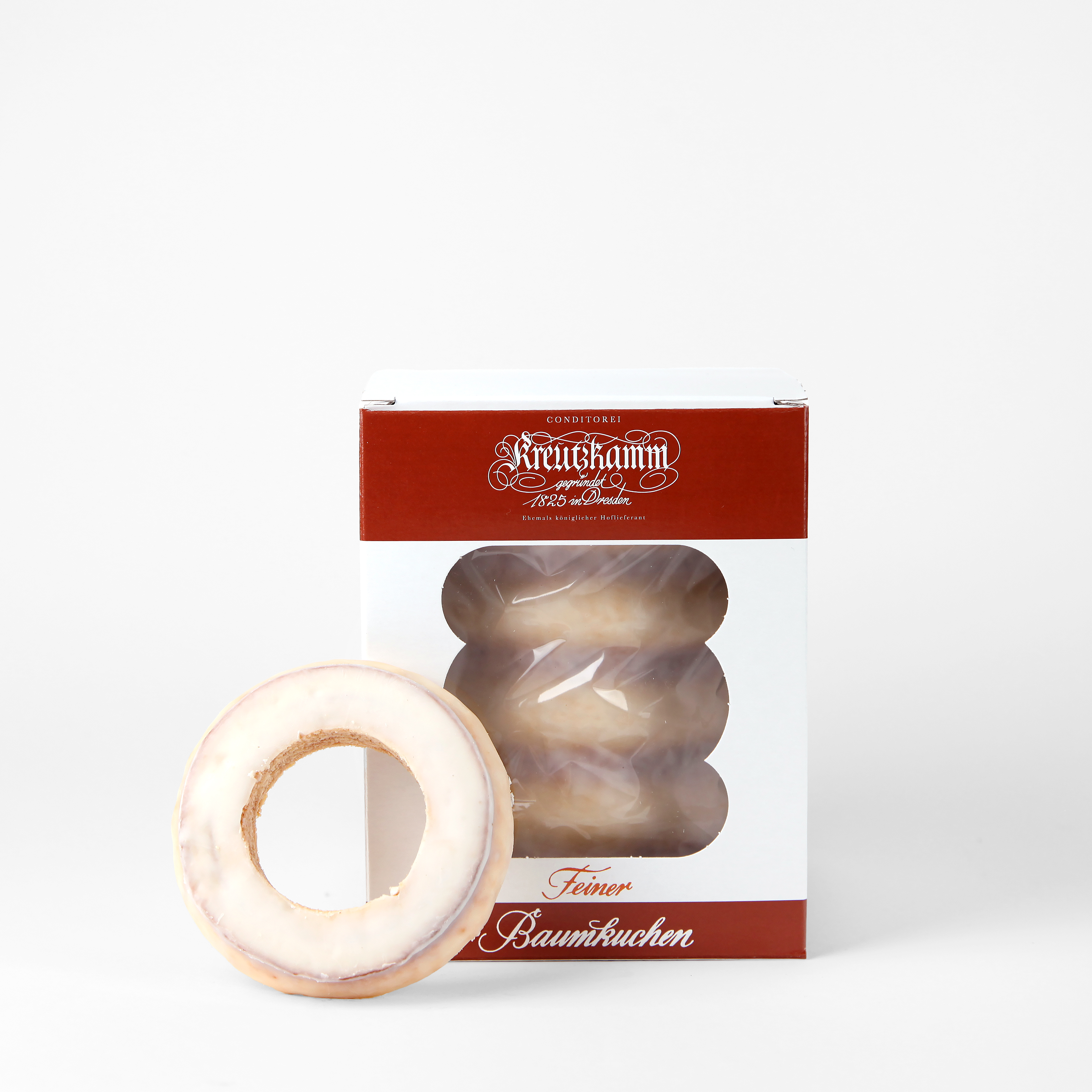 Kreutzkamm Baumkuchen is an indulgence every day. The freshly baked Baumkuchen is covered with fine vanilla glaze.