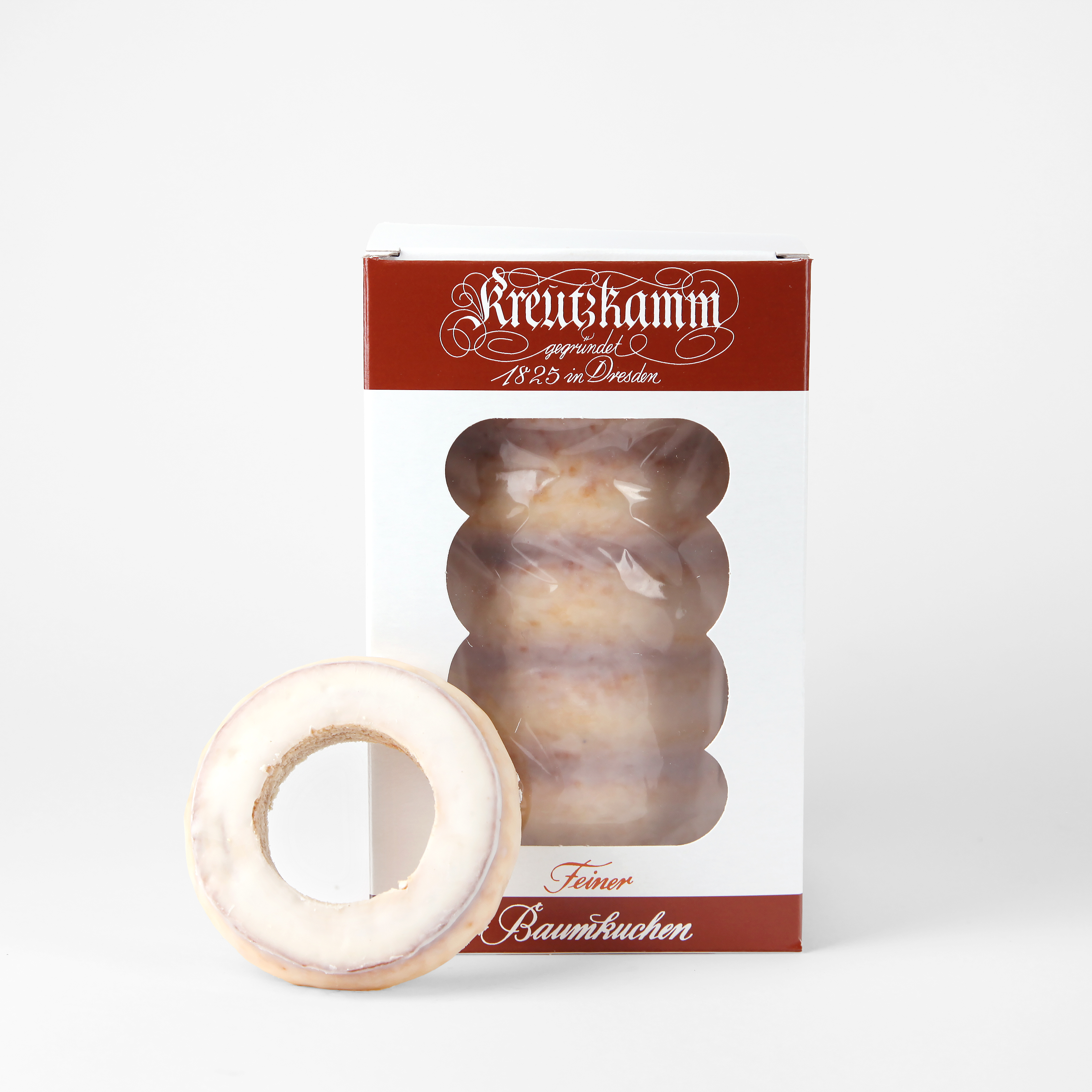 Kreutzkamm Baumkuchen is an indulgence every day. The freshly baked Baumkuchen is covered with fine vanilla glaze.
