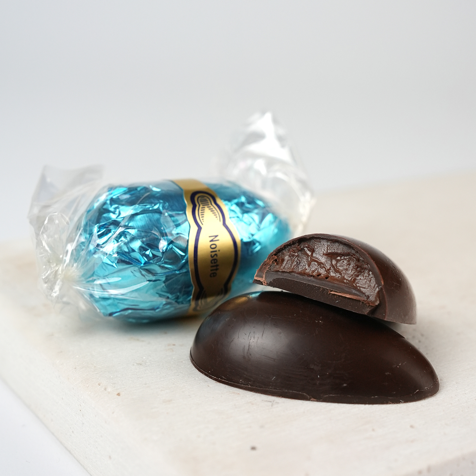 Dieses Dessert-Ei vereint die herbe Intensität dunkler Schokolade mit einer zart schmelzenden Noisette-Füllung. Die harmonische Kombination aus Haselnuss und Kakao sorgt für ein besonders ausgewogenes Geschmackserlebnis – cremig, aromatisch und fein abgestimmt.