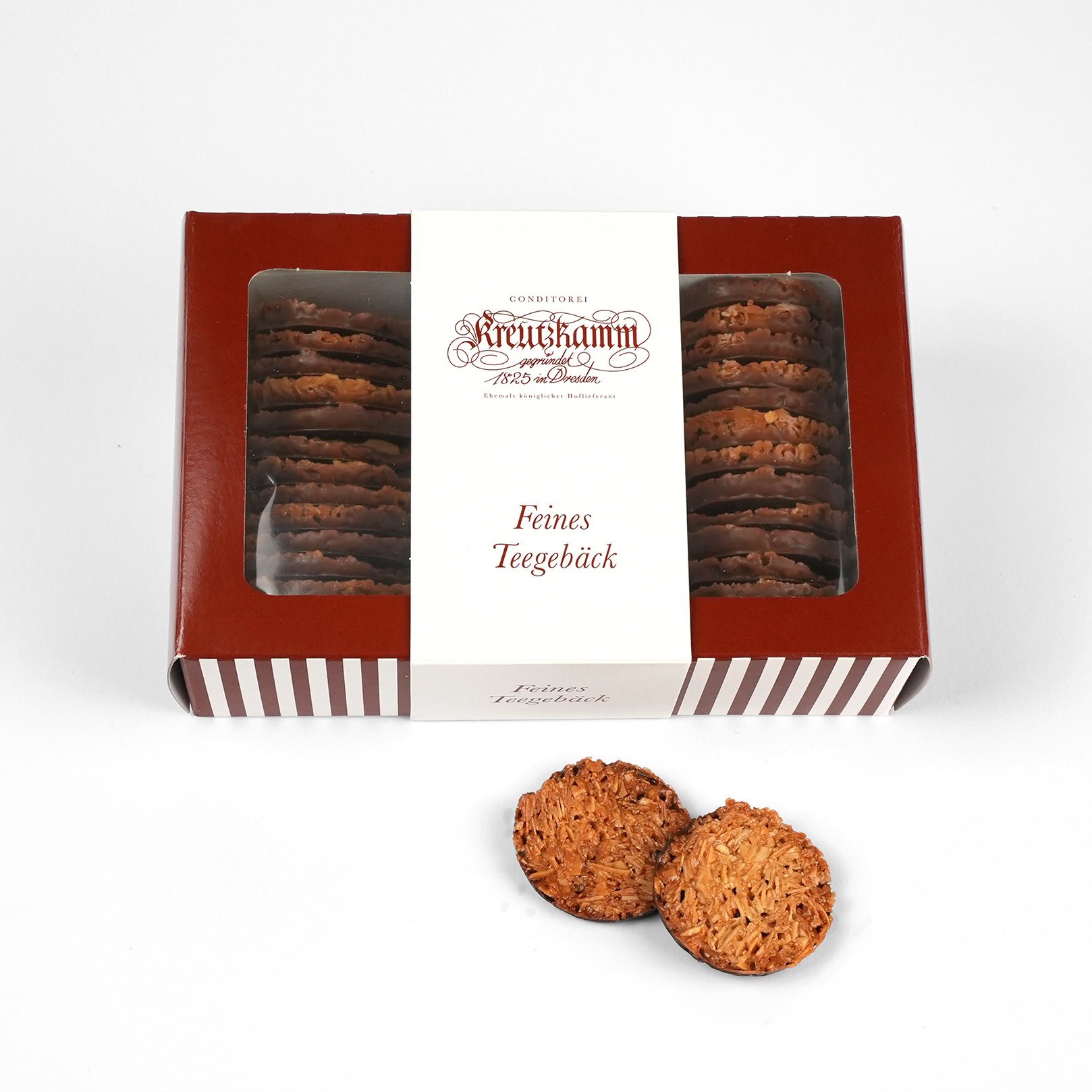 Unsere Mini-Florentiner verbinden karamellisierte Mandelplättchen mit dunkler Edelkuvertüre – ein Zusammenspiel aus zartem Schmelz und knuspriger Textur. Ob als süße Begleitung zum Kaffee oder als feines Präsent – diese kleine Spezialität verführt auf ganzer Linie.