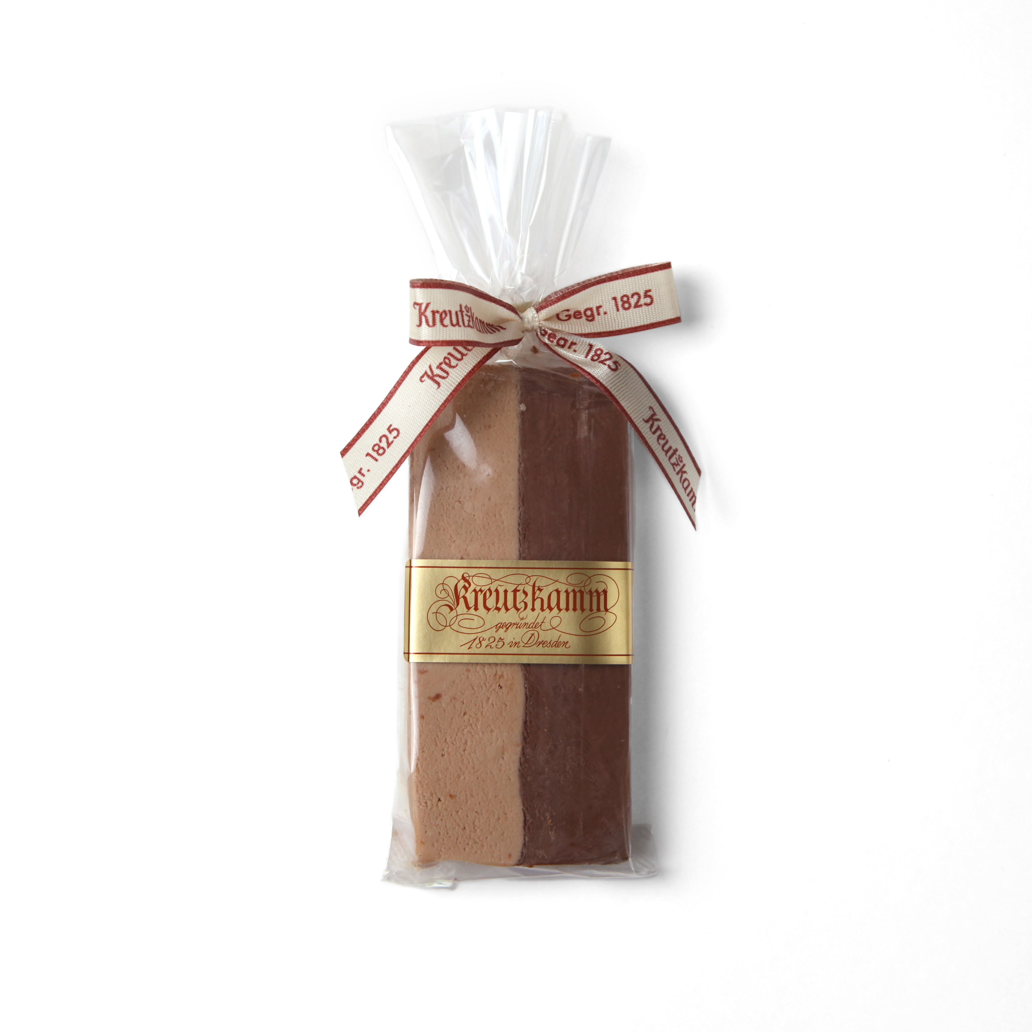 Unser Kreutzkamm Nougat-Duo vereint zwei klassische Pralinenspezialitäten zu einem unvergleichlichen Genusserlebnis für echte Feinschmecker. Der helle Mandelnougat begeistert durch seinen feinen, milden Geschmack, der dunkle Haselnussnougat durch seinen besonders kräftig-aromatischen Charakter. Jeder Bissen ist eine kleine Verführung – handgefertigt aus erlesensten Zutaten und mit viel Liebe zum Detail veredelt.