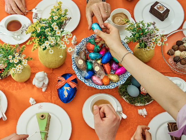 Ostergebäck und schokoladige Desserts kommen mit königlichem Versand zu Ihnen