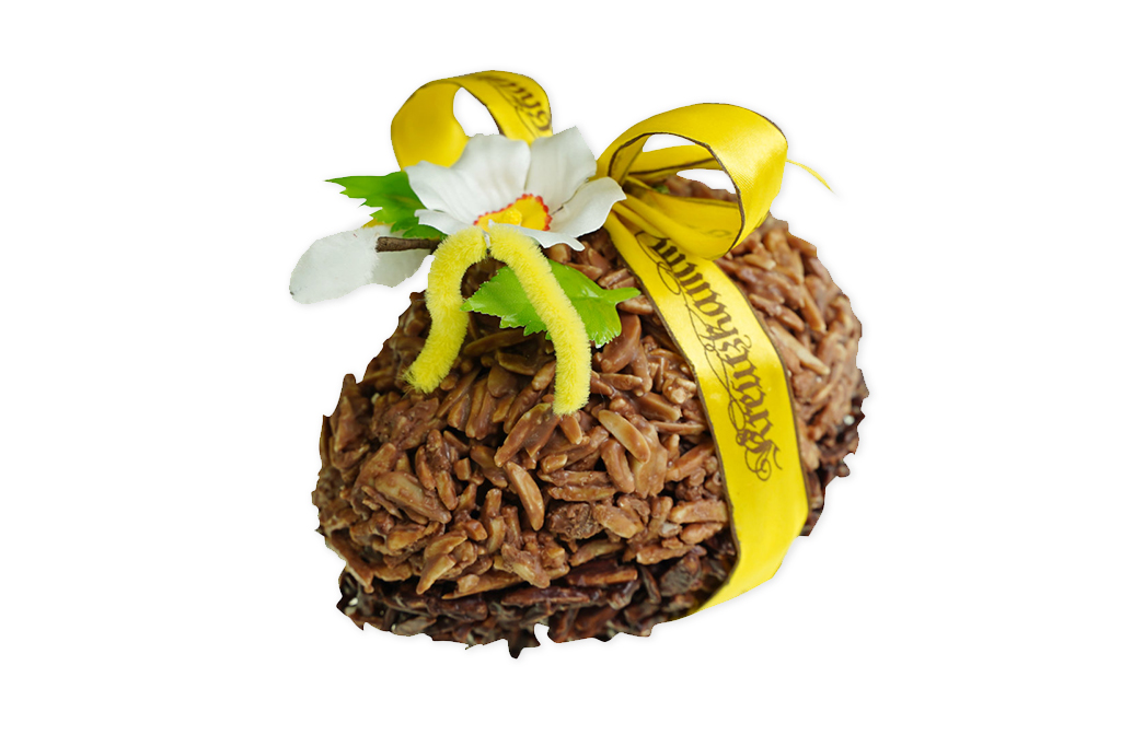 Sind Sie zu Ostern bei der Familie eingeladen, können Sie besonders Eindruck machen, wenn Sie unsere tollen Osterkuchen oder ein liebevoll gepacktes Präsentpaket mitbringen. Die Oster-Torte, in Form eines Ostereis, besteht aus saftigen Wiener Nussböden und ist gefüllt mit einer leckeren Nuss-Nougatcreme, fein abgeschmeckt mit Jamaica-Rum und Grand-Marnier. Vollendet wird sie mit einem Überzug aus Zartbitterkuvertüre und verziert mit detailverliebten Deko-Elementen. Zur Vesper kann der Osterkuchen ideal mit einer Tasse Kaffee genossen werden.