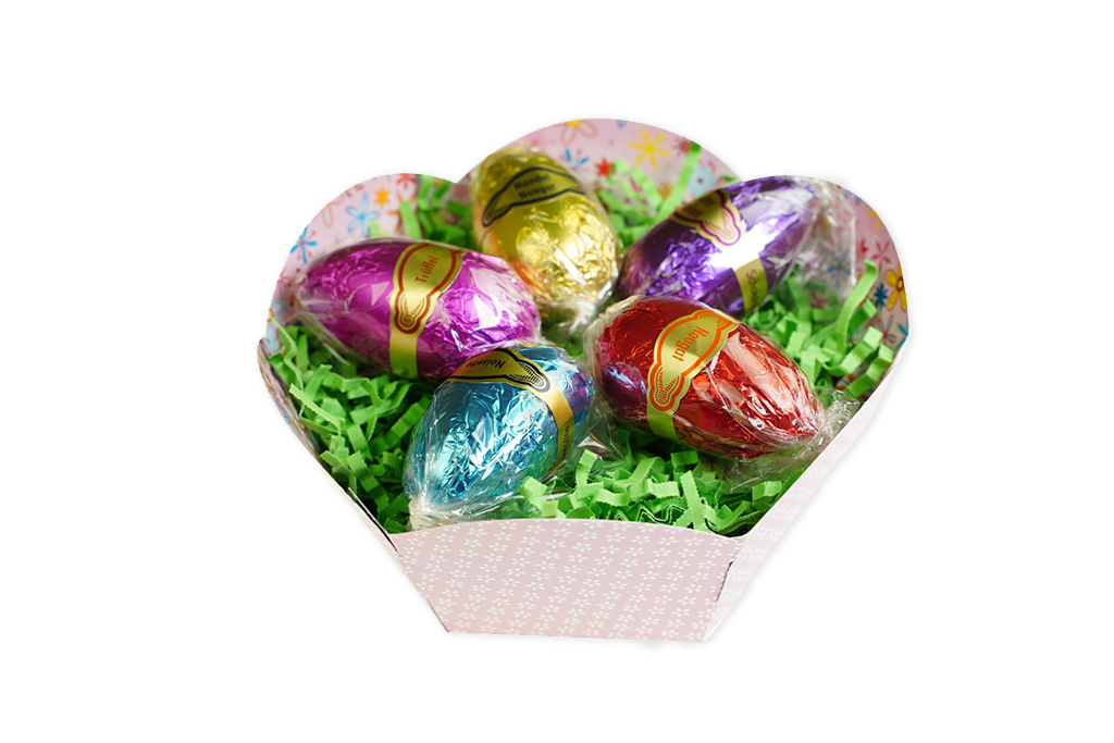 Sowohl von außen als auch von innen machen unsere mit Pralinen gefüllten Eier besonders viel her. Die äußere Schale besteht entweder aus feinster Kuvertüre, knackigem Krokant oder mit Schokolade umhüllten Mandelsplittern. Zudem sind sie liebevoll verziert und werden Ihnen in einem österlichen Geschenkkarton geliefert.