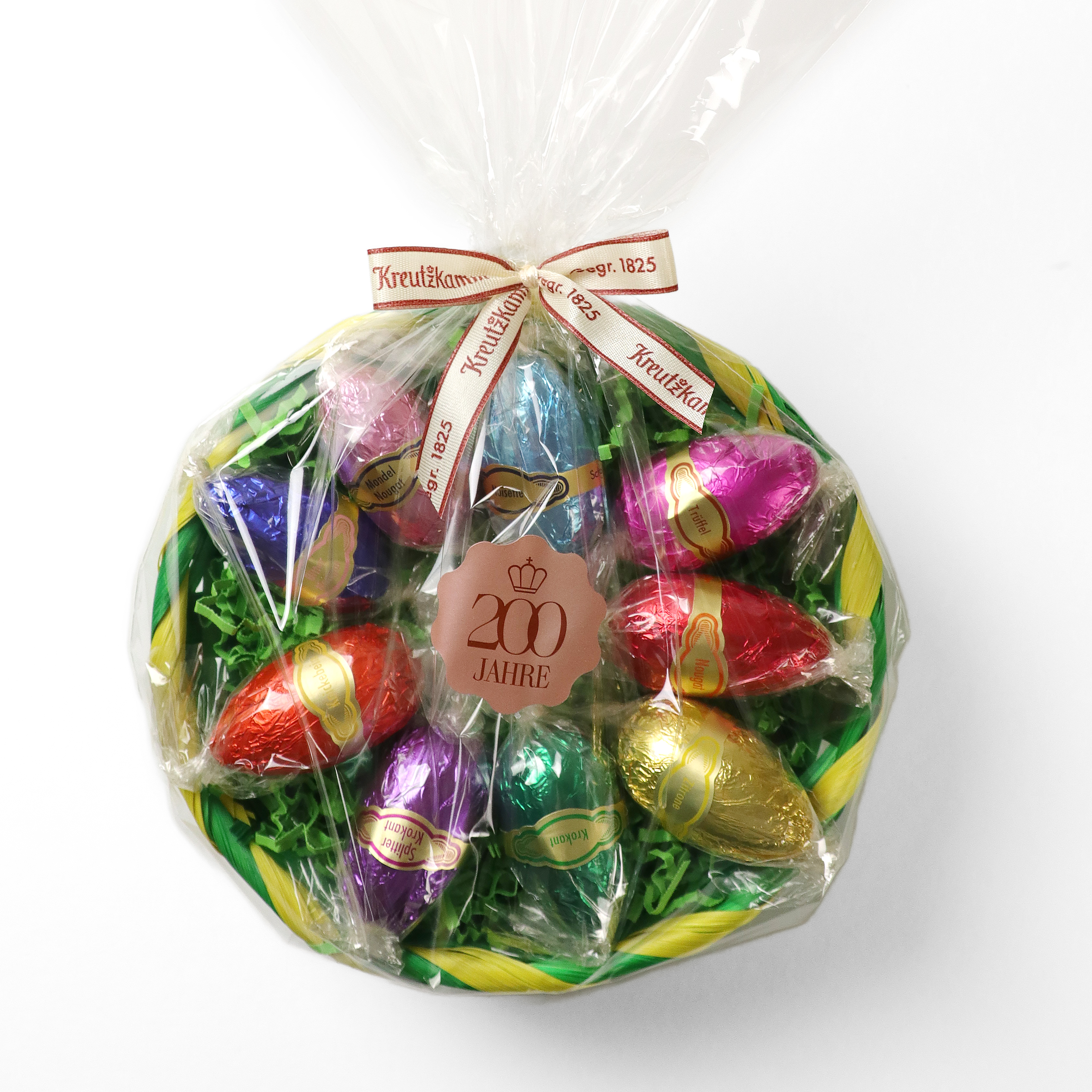 Die Conditorei Kreutzkamm steht seit fast 200 Jahren für handgefertigte Spezialitäten aus feinster Confiserie-Kunst. Mit diesem Körbchen voller Dessert-Eier verschenken Sie nicht nur Vielfalt und Geschmack, sondern auch ein Stück echter Handwerkstradition.