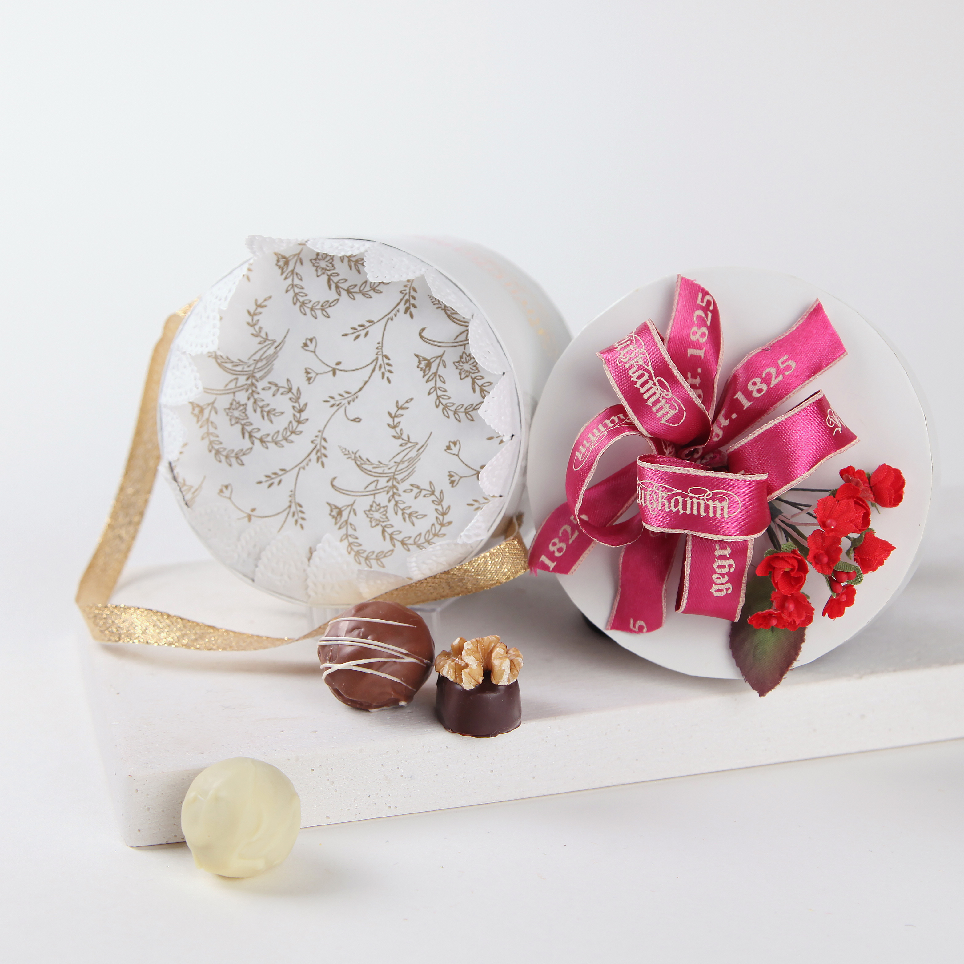 Seit 1825 steht Kreutzkamm für Confiserie-Kunst auf höchstem Niveau. Unsere Pralinenmischung im Hutkoffer ist eine Hommage an die feine Tradition, Genuss liebevoll zu inszenieren. Ein Klassiker für Naschkatzen, der Augen zum Leuchten bringt – und Gaumen verwöhnt. Jetzt entdecken und Freude verschenken!
