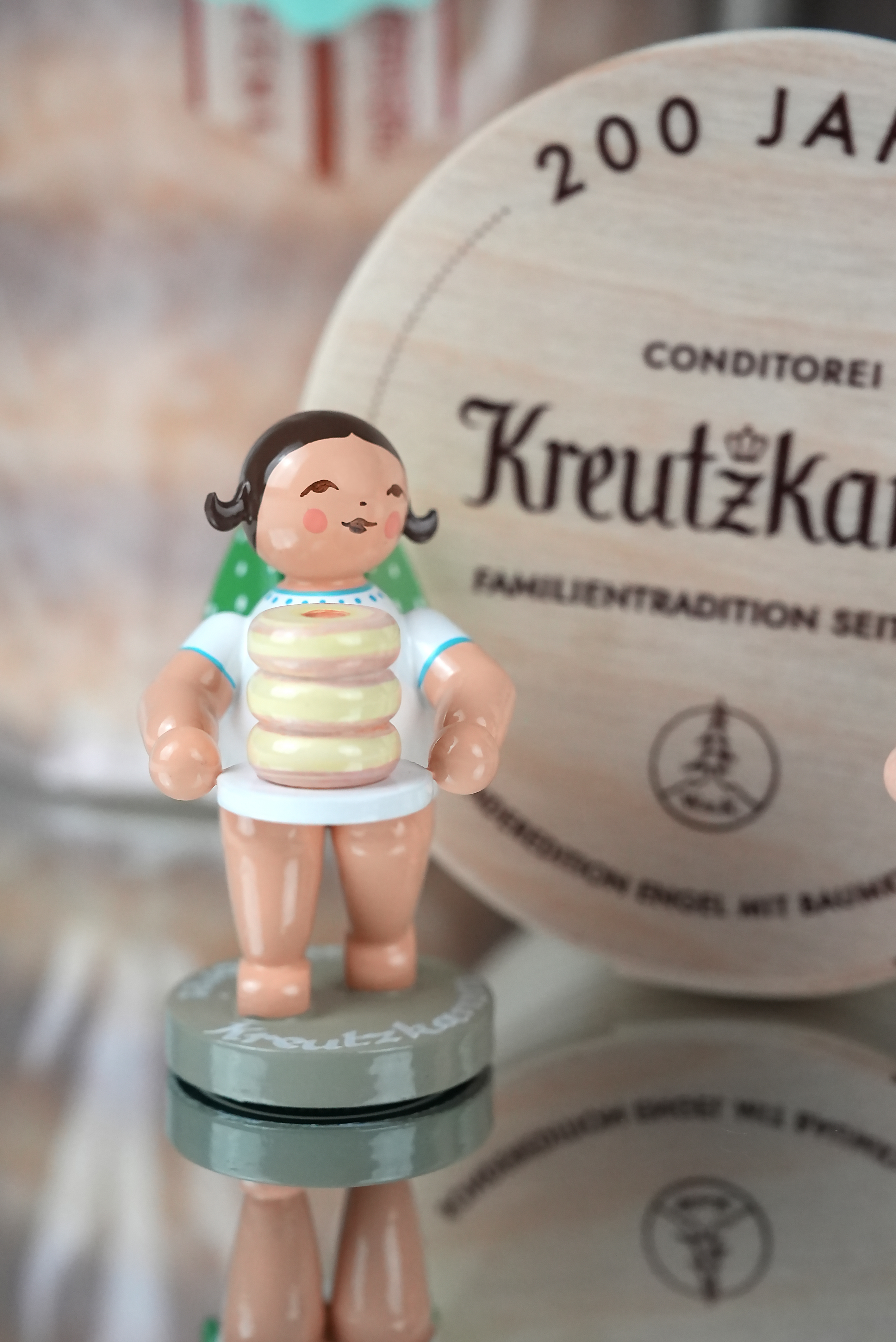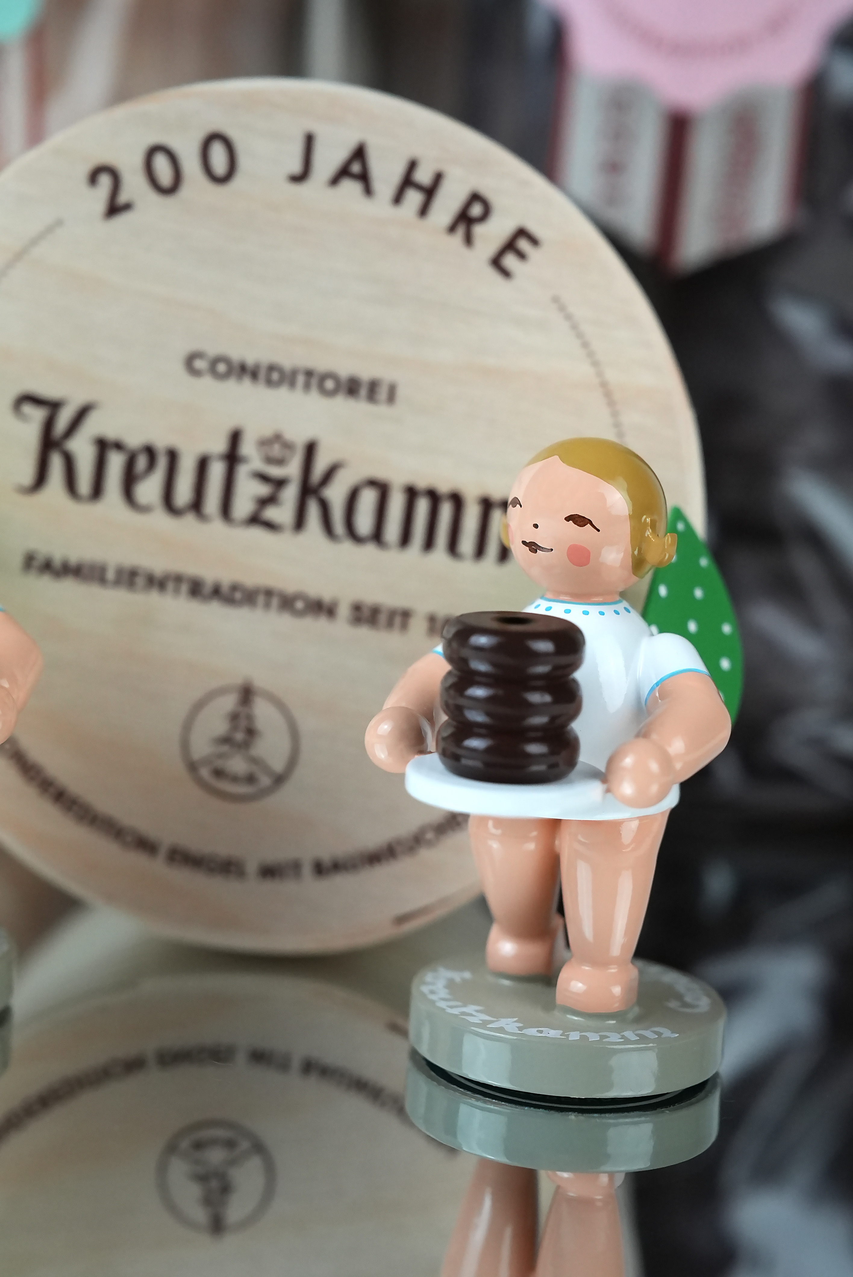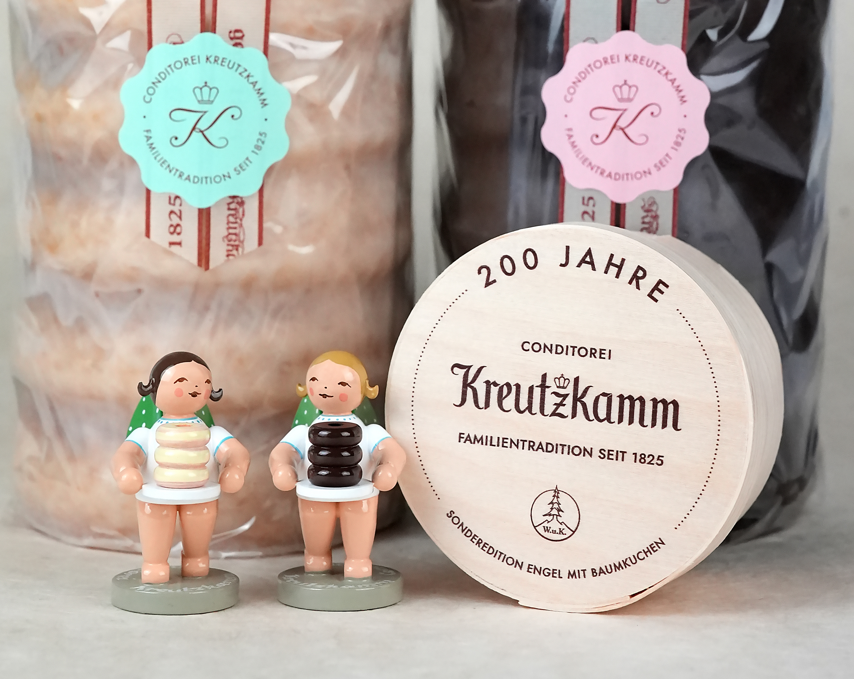 Anlässlich des 200-jährigen Firmenjubiläums von Kreutzkamm hat die berühmte Figurenmanufaktur Wendt & Kühn für uns einen exklusiven und limitierten Engel entworfen, der stolz einen Baumkuchen auf Händen trägt – den „König der Kuchen“, für den die Conditorei Kreutzkamm seit 1825 weltweit bekannt und geschätzt wird.
