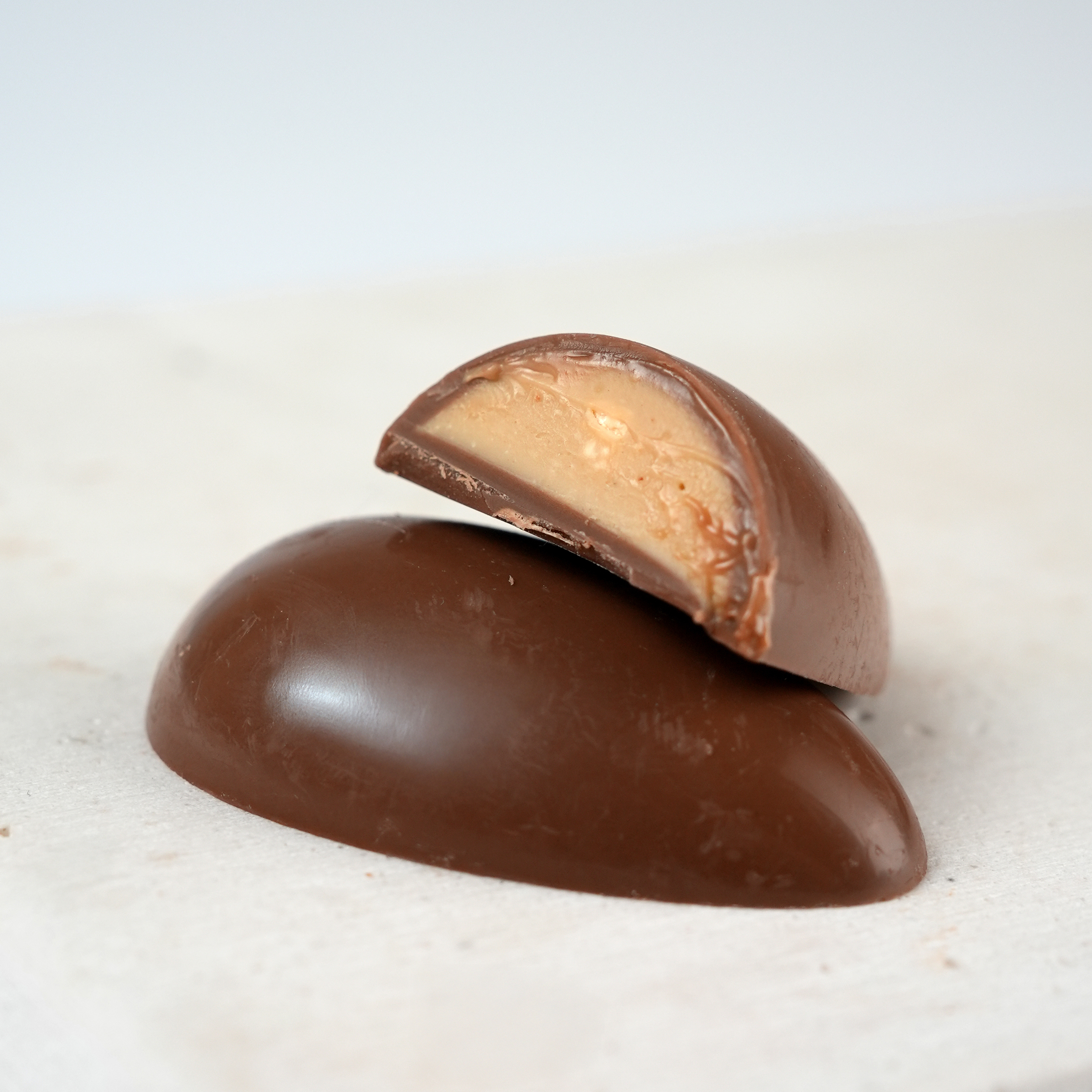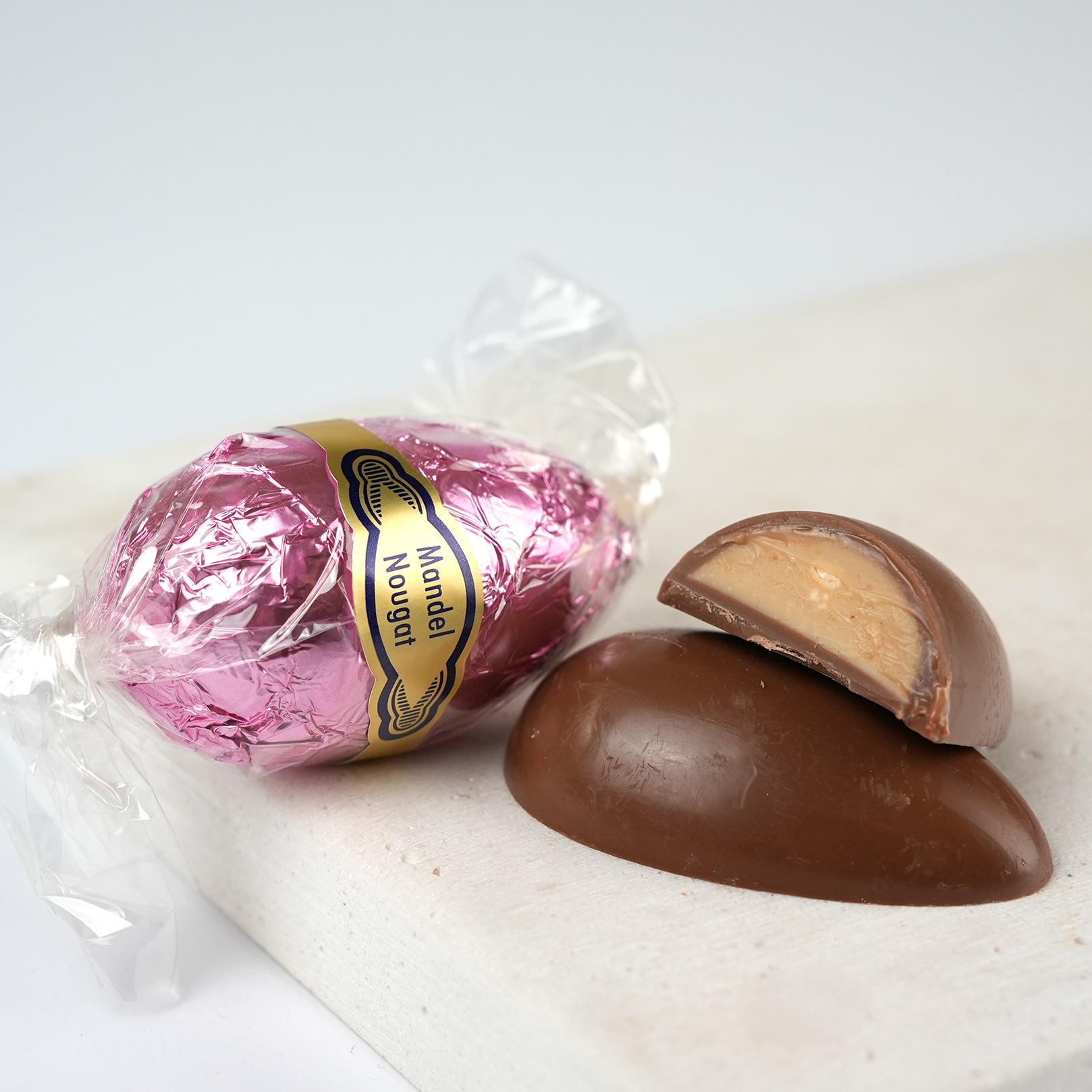 Unser Mandel-Nougat wird aus hochwertigsten Mandeln hergestellt und nach hauseigener Rezeptur verarbeitet. In Verbindung mit zarter Schokolade entsteht ein Dessert-Ei für echte Feinschmecker.