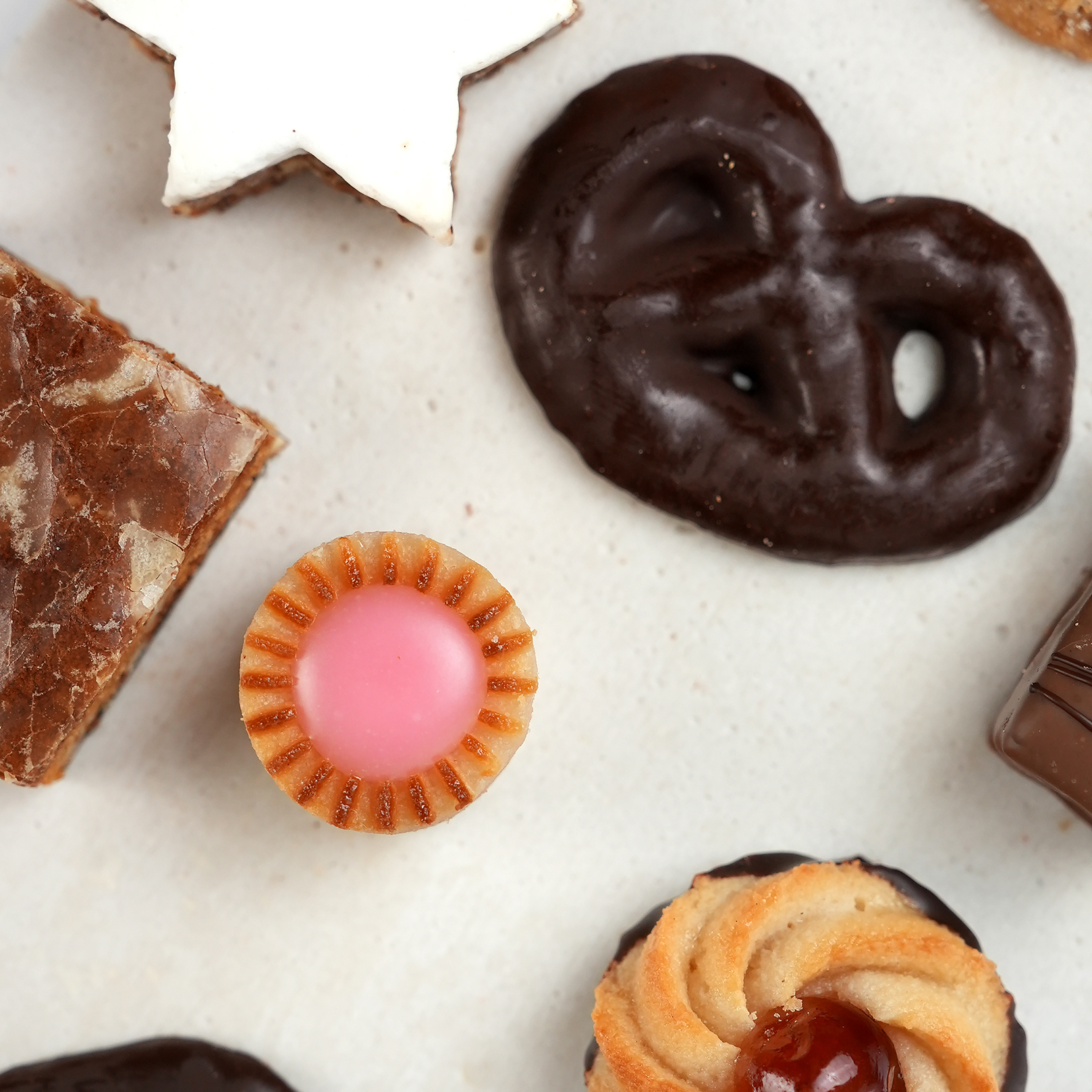 In unserer Backstube entsteht handgemachtes Weihnachtsgebäck nach überlieferten Rezepturen, Stück für Stück von Hand gefertigt. Neben Klassikern wie Zimtsternen, Spekulatius oder Vanillekipferln finden sich in unserer Auswahl auch besondere Kreationen wie Orangenmakronen, Canachestreifen, Anislaiberl oder Basler Leckerli. Jedes Gebäck wird sorgfältig abgestimmt und aus besten Zutaten hergestellt – für den unverwechselbaren Geschmack echter Confiserie-Kunst.
